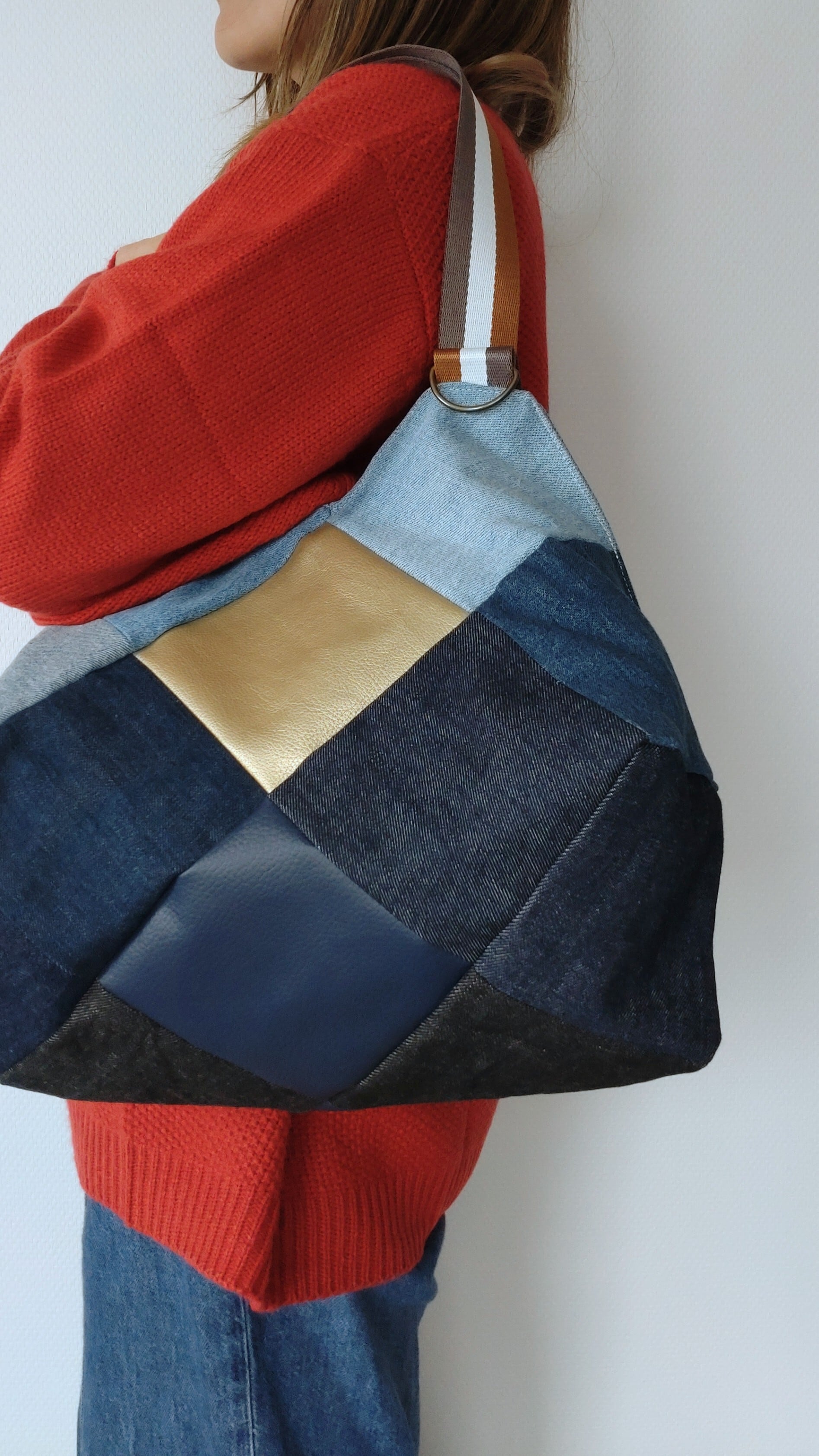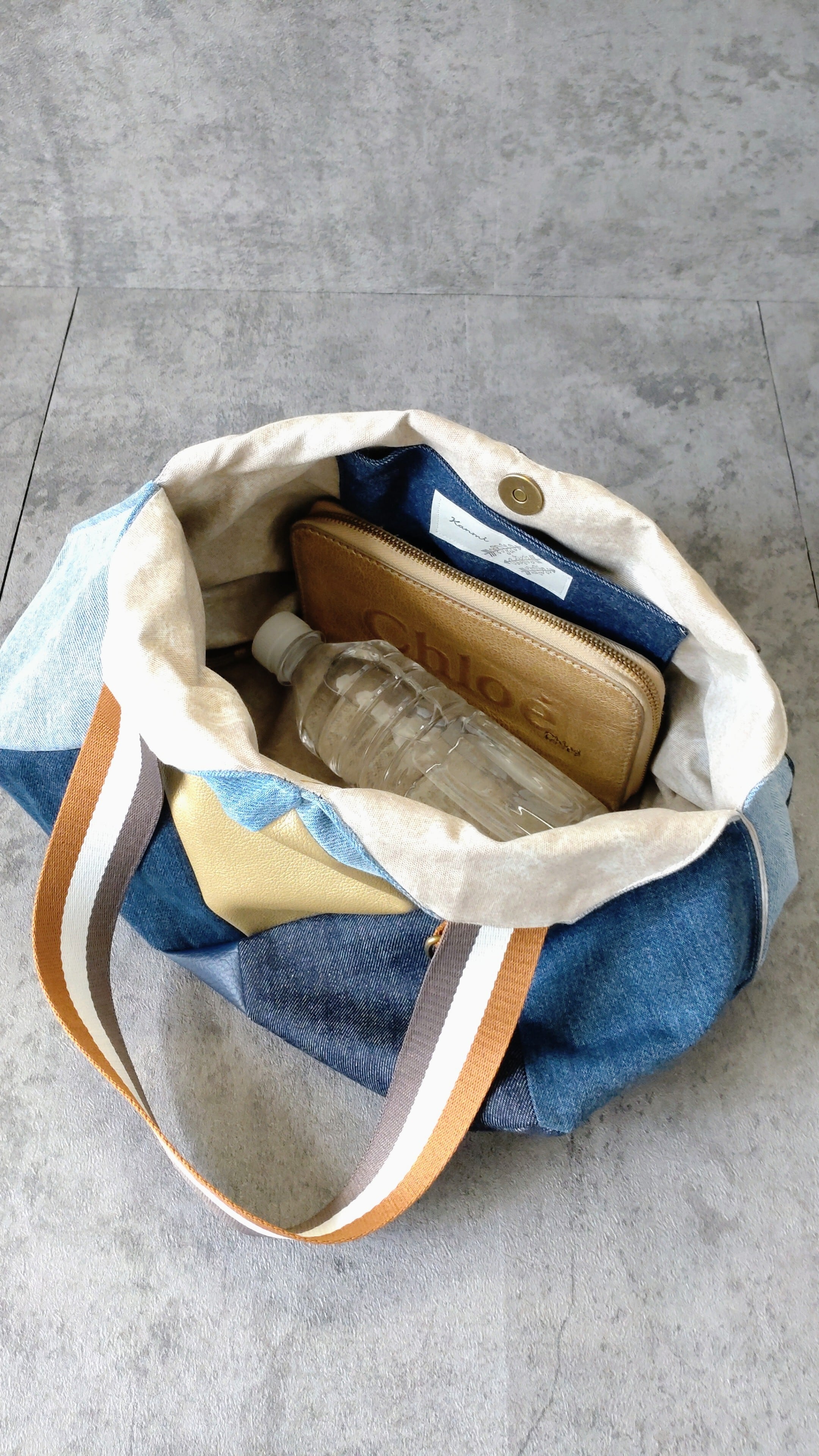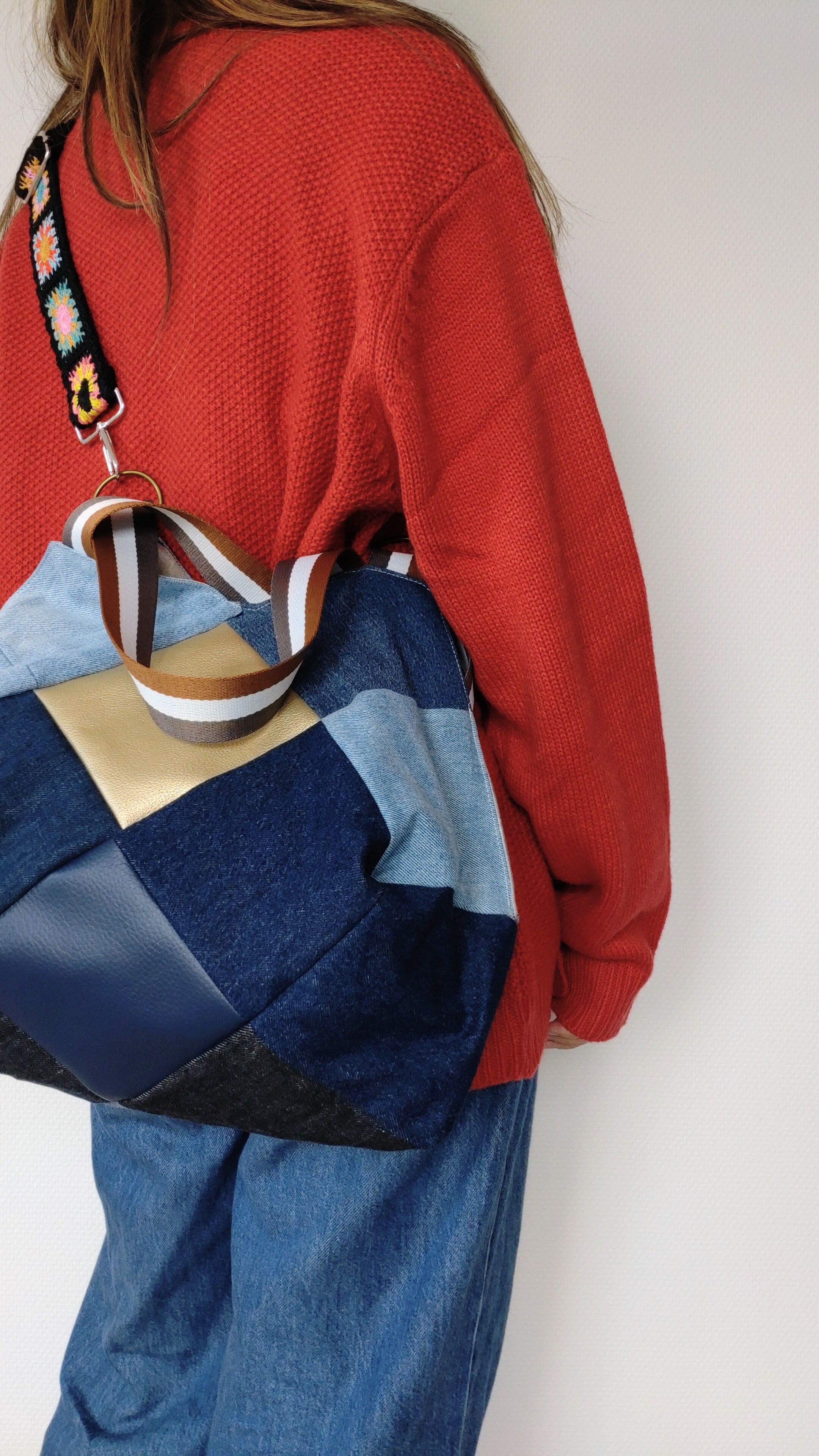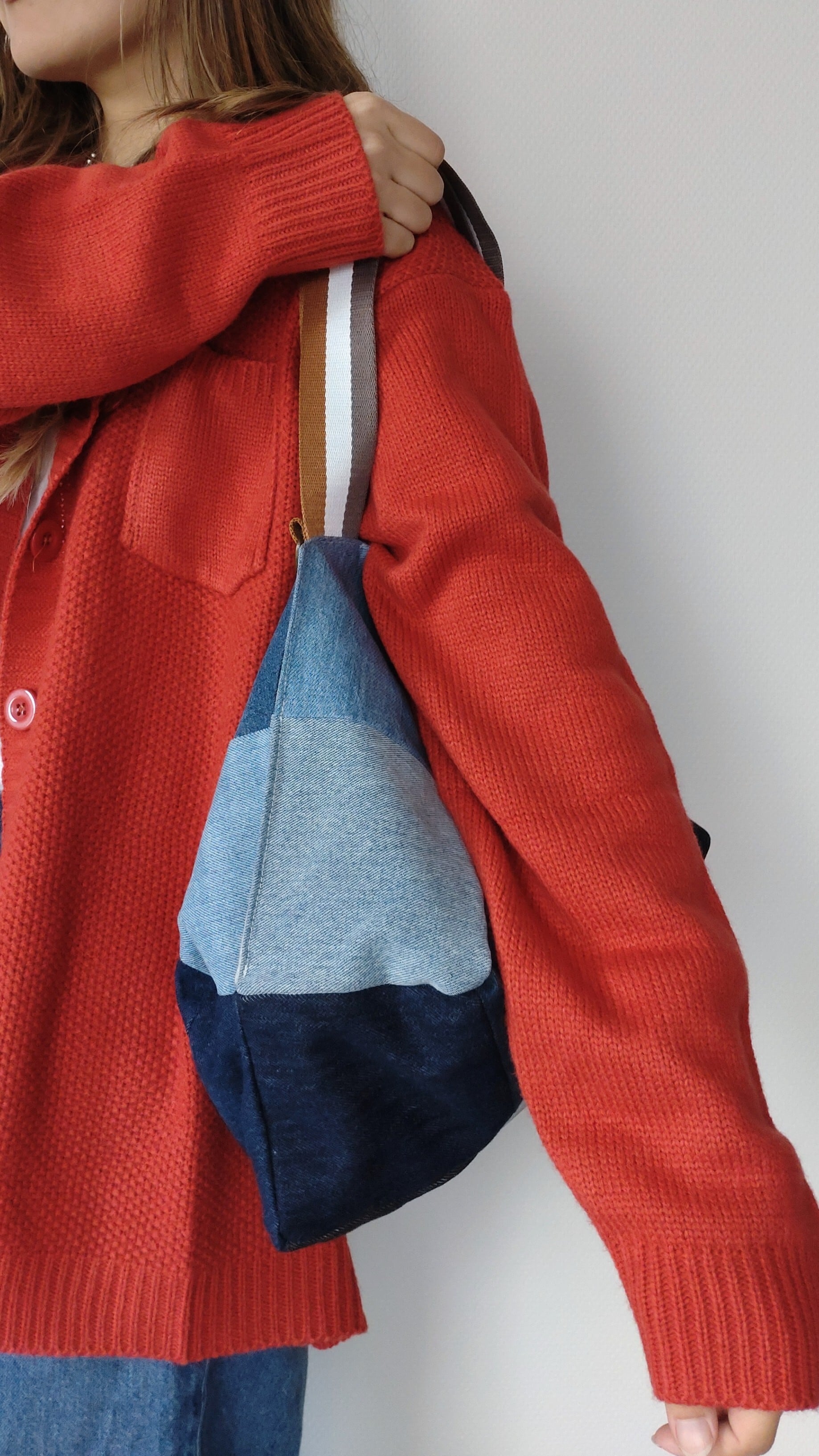 #デニムトートバッグ #パッチワークバッグ #リメイクデニム #ハンドメイドバッグ #大容量トート #デニム雑貨 #お出かけバッグ