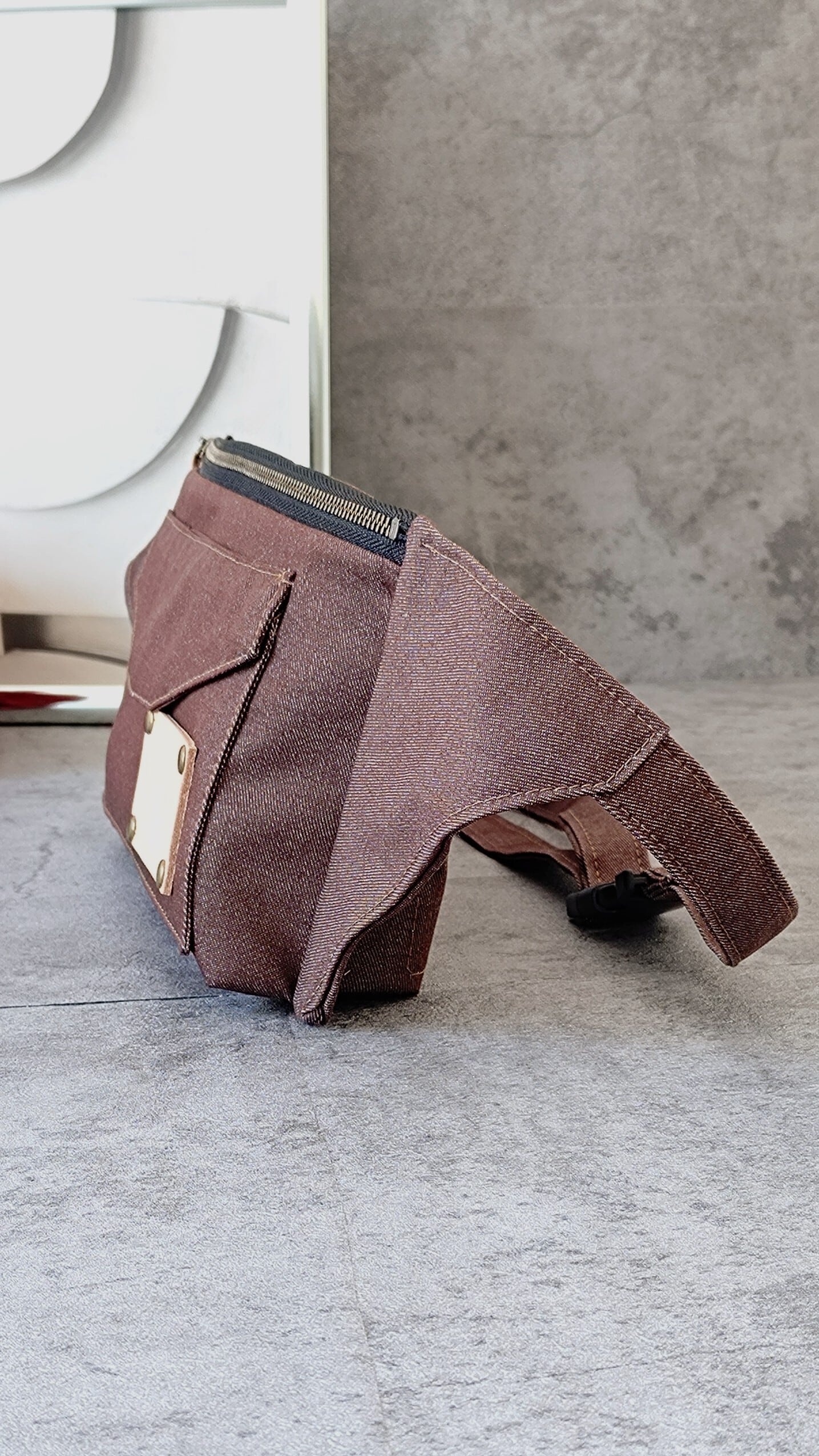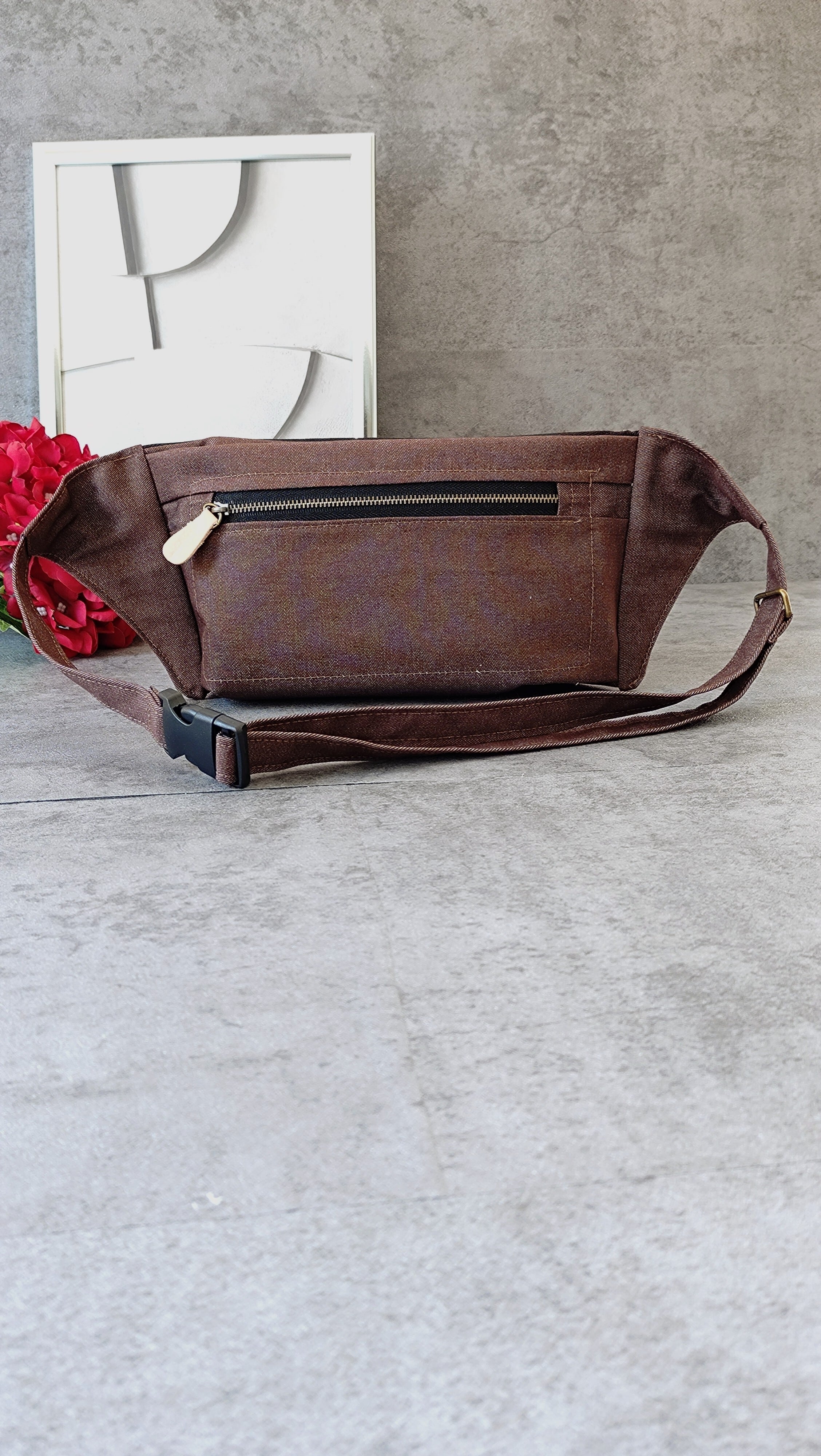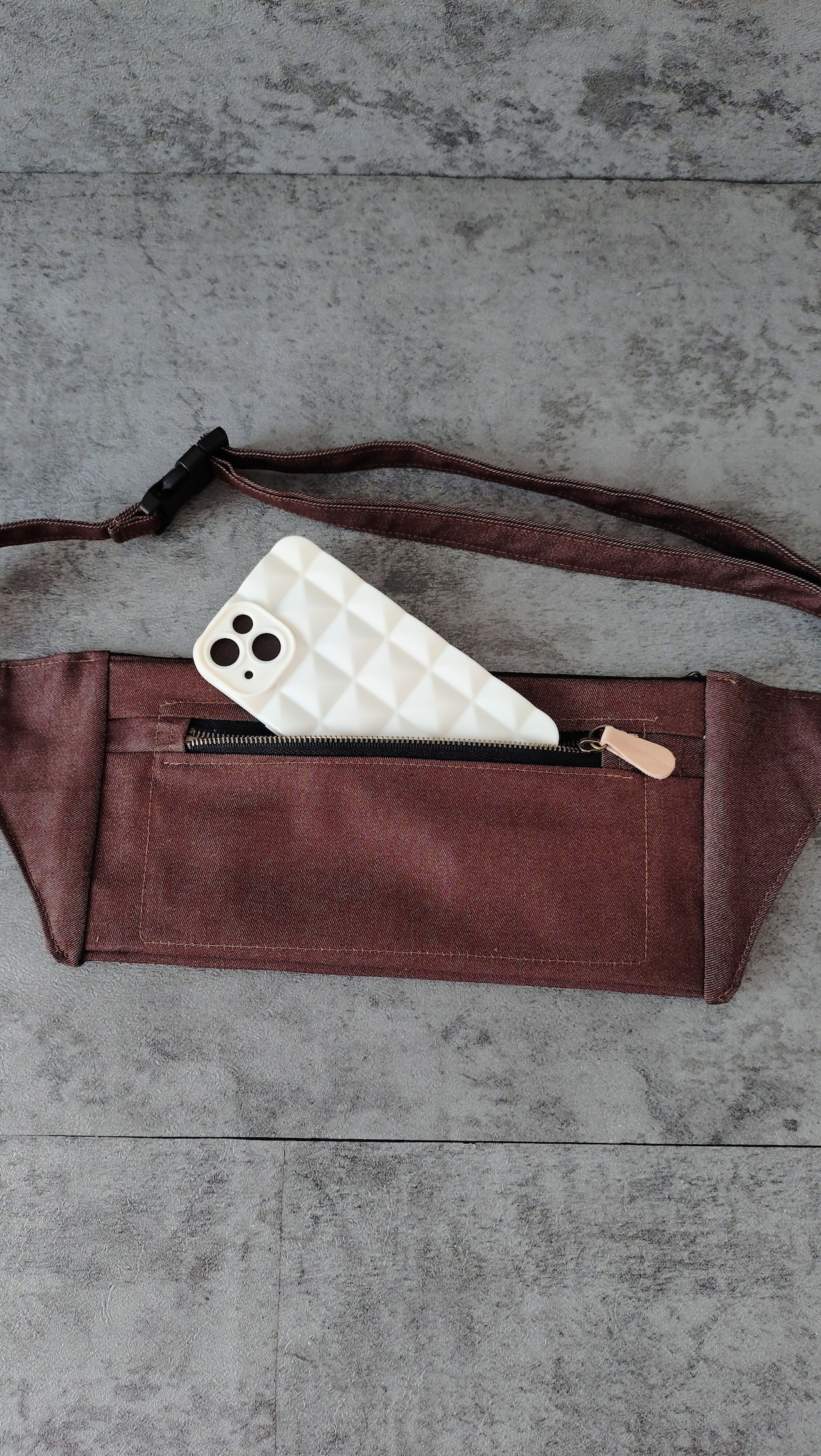 (54)カラーデニム ブラウン ボディバッグ メンズ レディース スリム リメイクではありません