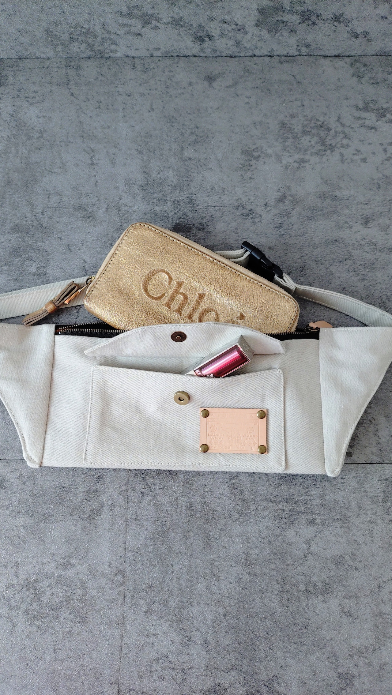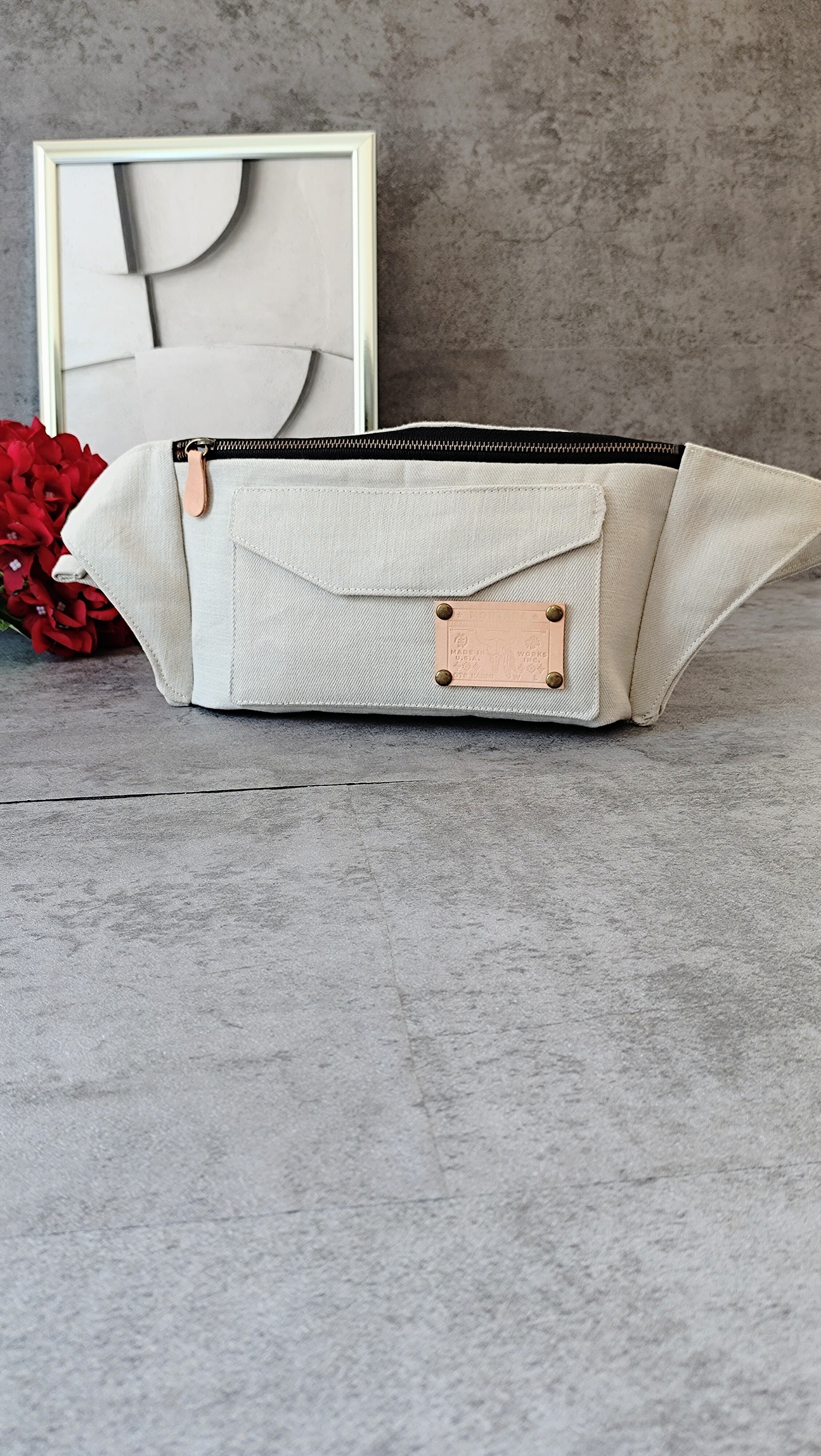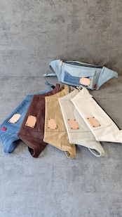 (56)カラーデニム グレージュ ボディバッグ メンズ レディース スリム ※リメイクではありません