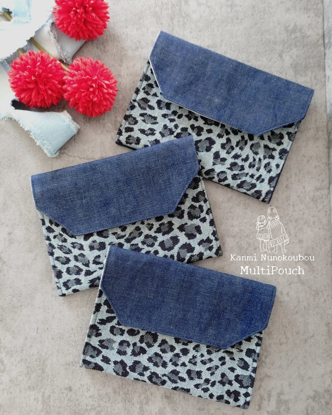 (92)カタチが変わる不思議なポーチ マルチケース マルチポーチ デニム