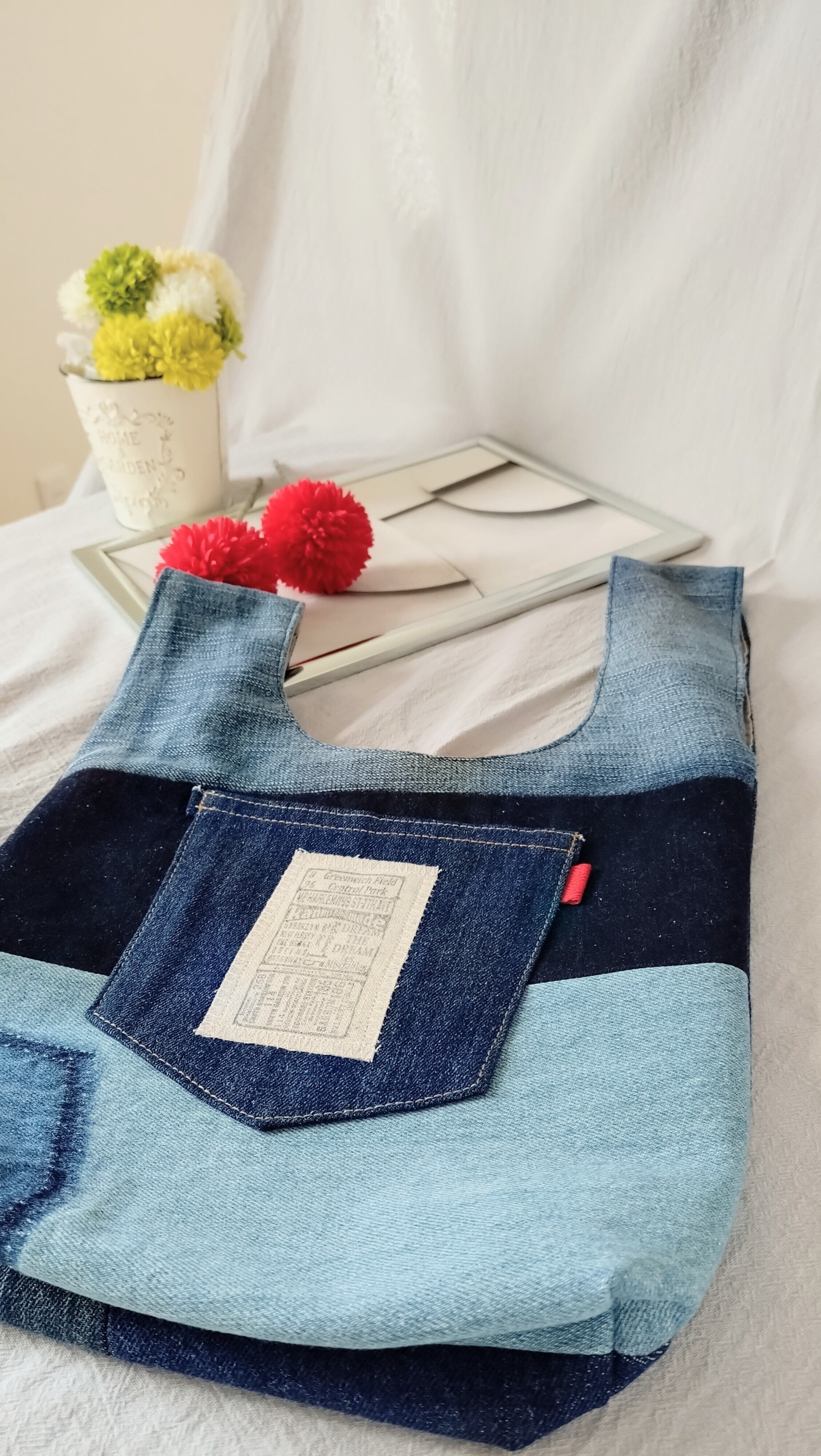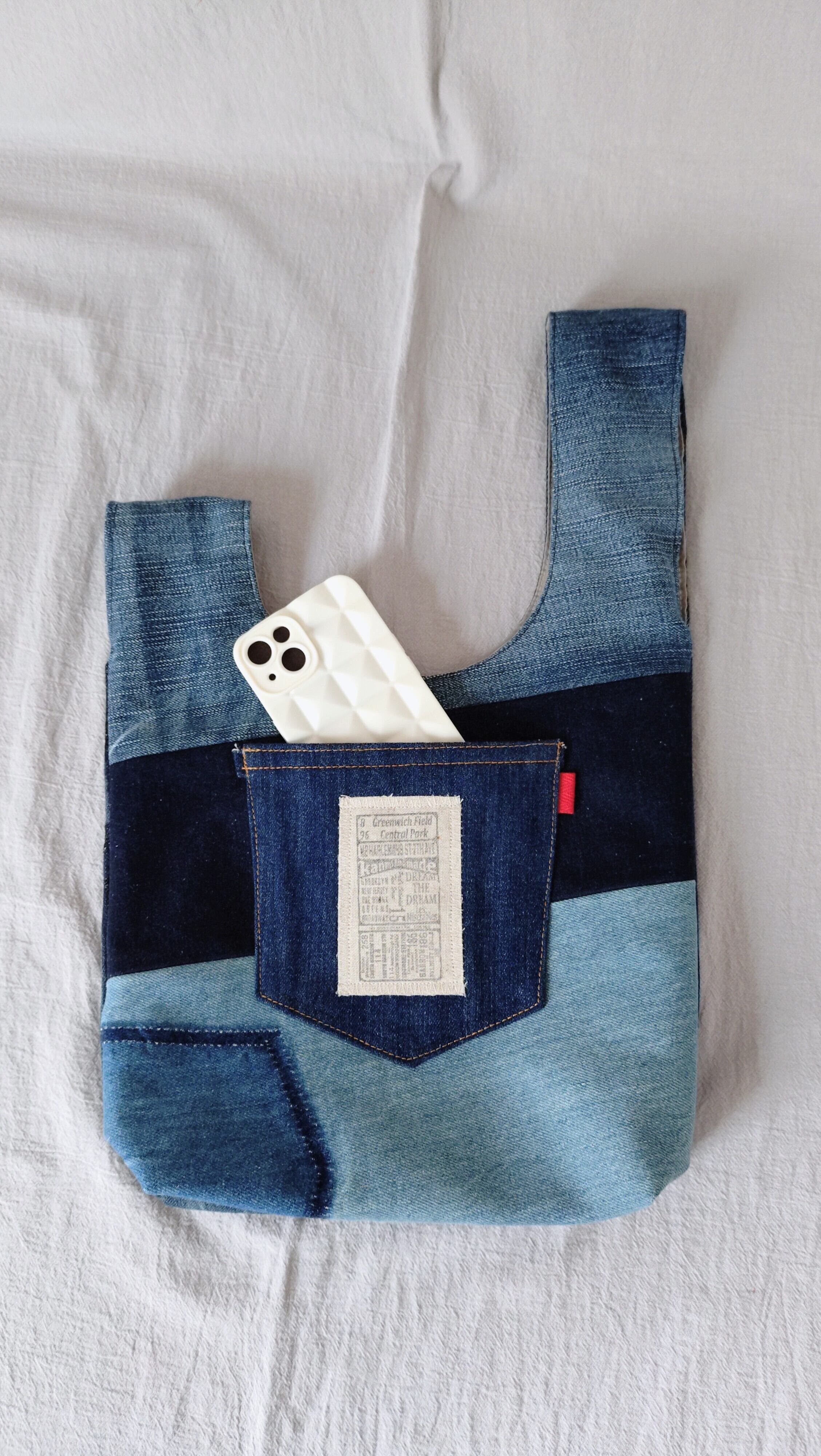 (28) ノットバッグ リメイクデニム ワンハンドルバッグ ミニトート