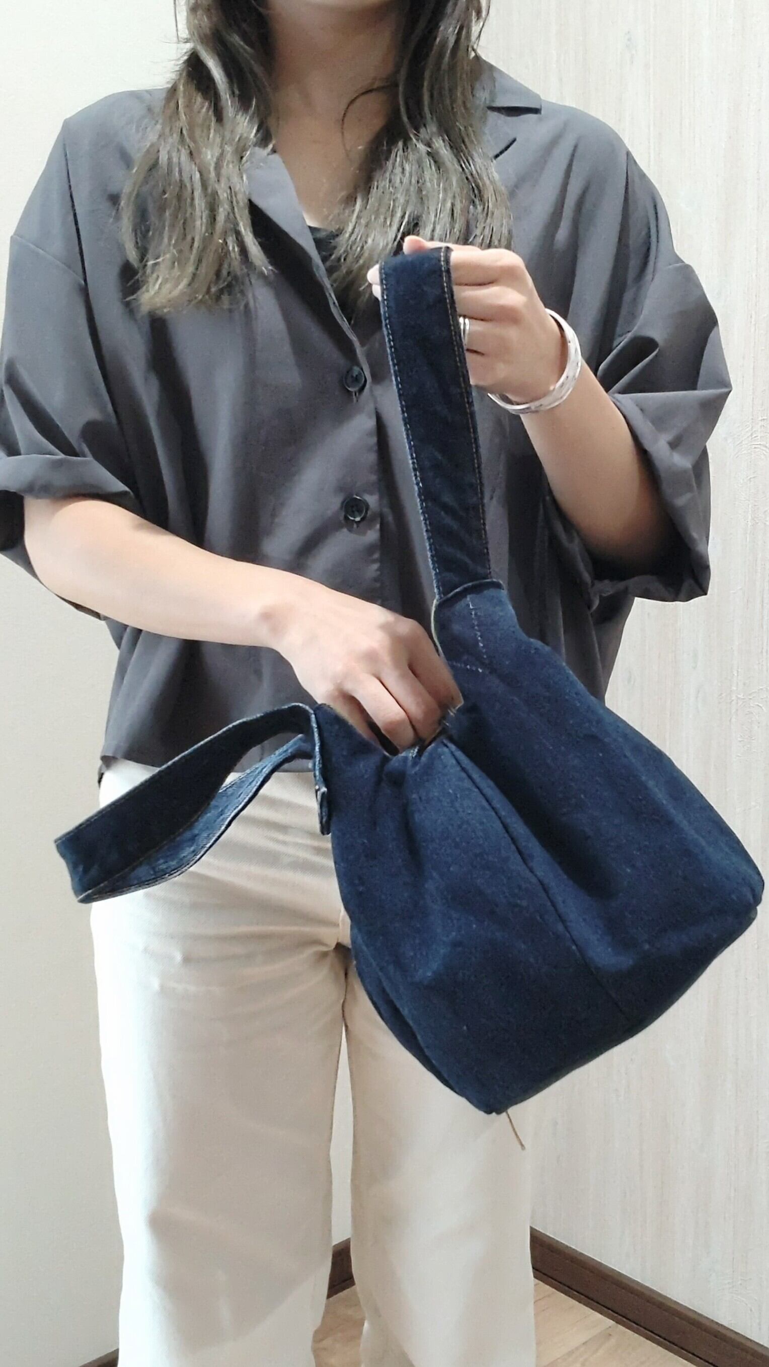 #デニムバッグ #巾着バッグ #まん丸バッグ #まんまるバッグ #デニム巾着 #可愛いバッグ #大容量バッグ #デニム #リメイクデニム